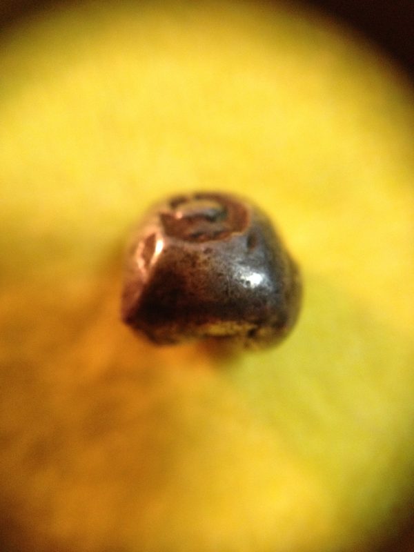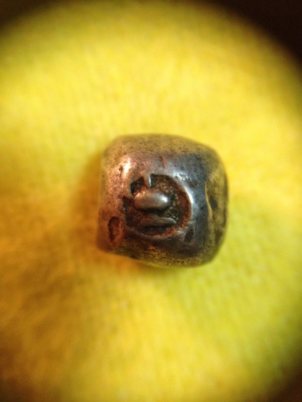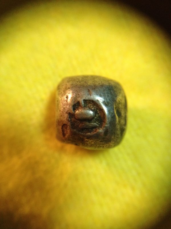 พดด้วงรัตนโกสินทร์เม็ดบาทสมัย ร. 4 พ.ศ.2394-2411 ( ตรามงกุฎ-กรงจักร ) เม็ดนี้พิเศษมี 3 ตรา (เม็ดที่ 2)