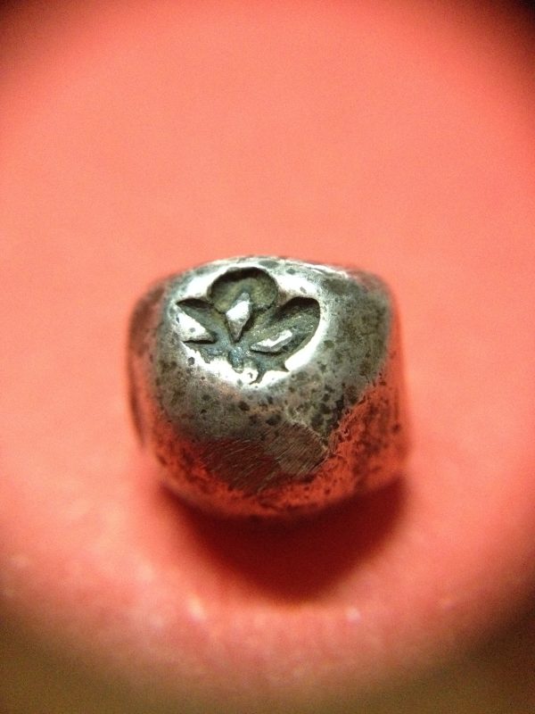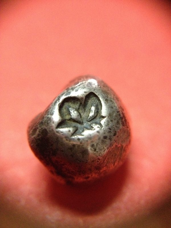พดด้วงเม็ด 1 บาทสมัยพระเจ้าทรงธรรมปี พ.ศ. 2155-2171 ตรา เปลวเพลิง เป็นรูปคล้ายดวงไฟมีเปลวลอยสองข้าง สวยคมชัดเป็นแบบหายาก (เม็ดที่10)