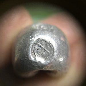 พดด้วงเม็ด 1 บาทสมัยพระเจ้าทรงธรรมปี พ.ศ. 2155-2171 ตรา เปลวเพลิง เป็นรูปคล้ายดวงไฟมีเปลวลอยสองข้าง สวยคมชัดเป็นแบบหายาก (เม็ดที่10)