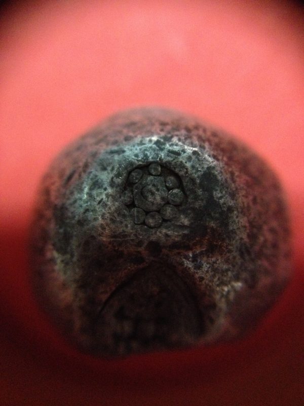 พดด้วงเม็ด 1 บาทสมัยพระนารายณ์ปี พ.ศ. 2199-2231 ตรา บัว หรือ พุ่มข้าวบิณฑ์ใต้จุดบนมีเส้นสองแฉก สวยคมชัด (เม็ดที่ 5)