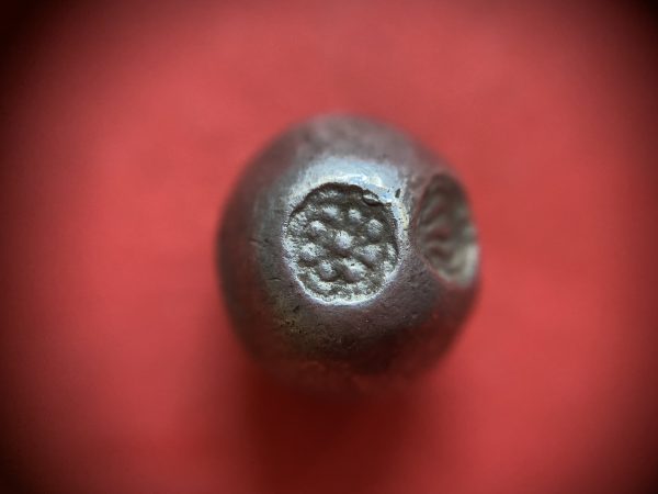 พดด้วงเม็ด 1 บาทสมัยพระเจ้าทรงธรรมปี พ.ศ. 2155-2171 ตรา เปลวเพลิง เป็นรูปคล้ายดวงไฟมีเปลวลอยสองข้าง สวยคมชัดเป็นแบบหายาก (เม็ดที่10)