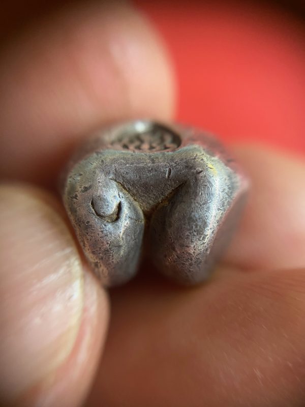 พดด้วงรัตนโกสินทร์เม็ดบาทสมัย ร. 4 พ.ศ.2394-2411 ( ตรามงกุฎ-กรงจักร ) เม็ดนี้พิเศษมี 3 ตรา (เม็ดที่ 2)