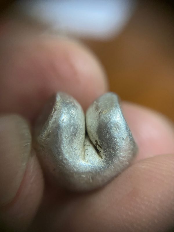 พดด้วงเม็ด 1 บาทสมัยพระเจ้าทรงธรรมปี พ.ศ. 2155-2171 ตรา เปลวเพลิง เป็นรูปคล้ายดวงไฟมีเปลวลอยสองข้าง สวยคมชัดมากๆหายากมากสภาพนี้ (เม็ดที่ 11)
