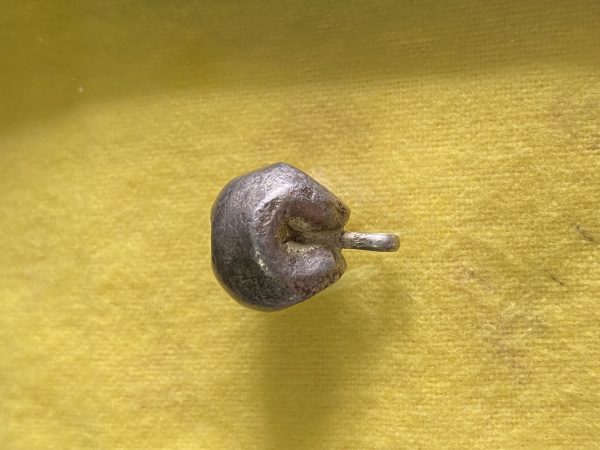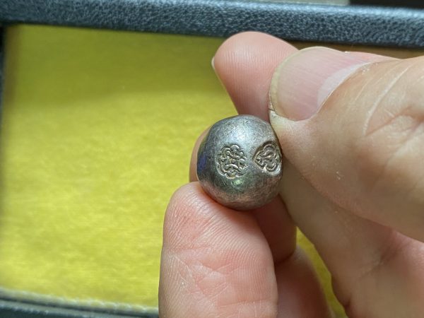 พดด้วงเม็ด 1 บาทสมัยพระเจ้าปราสาททองปี พ.ศ. 2173-2198 ตรา พุ่มข้าวบิณฑ์จอมปราสาท เป็นรูป 7 จุดอยู่ภายในกรอบ สวยคมชัดมากๆ (เม็ดที่ 2)