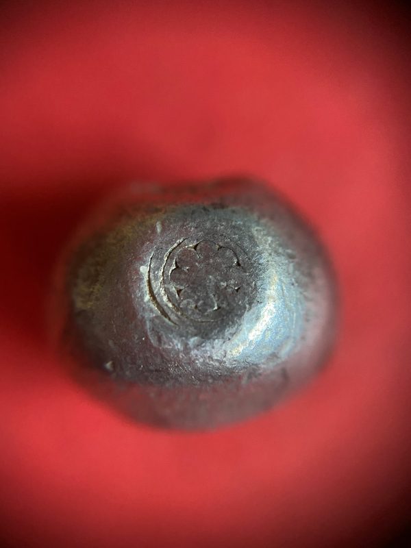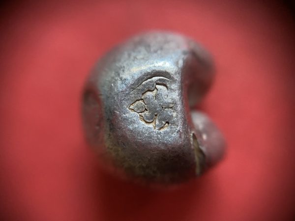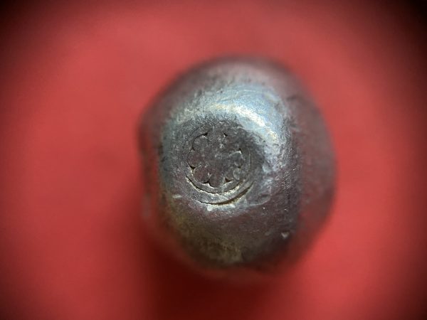 พดด้วงเม็ด 1 บาทสมัยพระเจ้าปราสาททองปี พ.ศ. 2173-2198 ตรา พุ่มข้าวบิณฑ์จอมปราสาท เป็นรูป 7 จุดอยู่ภายในกรอบ สวยคมชัดมากๆ (เม็ดที่ 2)
