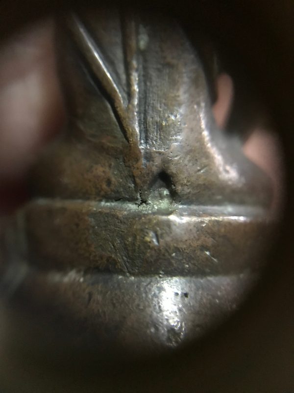 พระกริ่งหลวงปู่ทิมเนื้อทองแดง ตอกโค๊ตด้านหลัง ใต้ฐานตอกโค๊ตหมายเลข 216