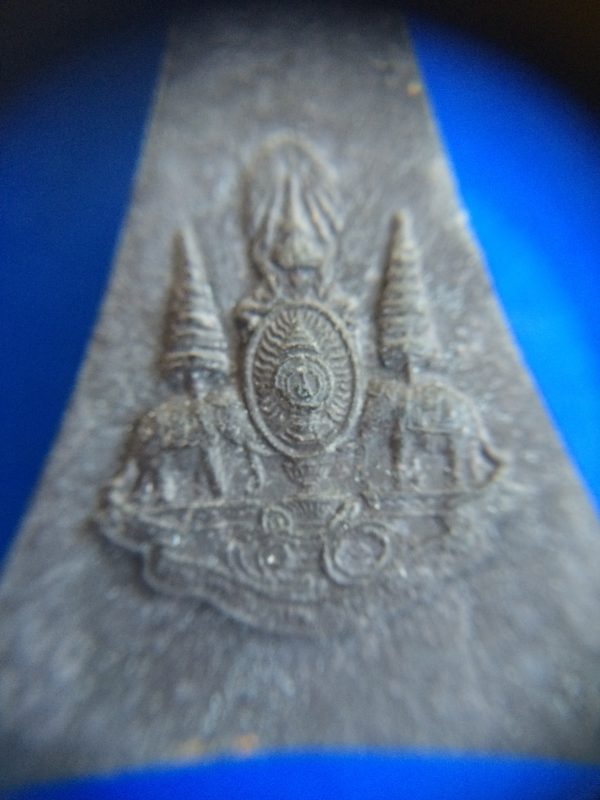 พระกำลังแผ่นดิน มวลสารจิตรดาออกวัดบวรรุ่นแรกปี 2539 ผ่านพิธีพุทธาภิเษก ด้านหลังมีตรากาญจนาภิเษก