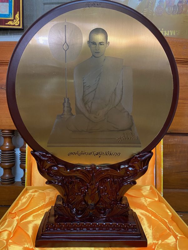จัดสร้างโดยศูนย์ส่งเสริมพุทธศาสนาแห่งประเทศไทยขนาดกว้าง28ซม.สู.39ซม.ทำจากแผ่นโลหะแปะที่เนื้อไม้สวยงามมากๆ