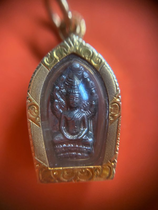 พระปรกใบมะขามหลวงพ่อคูณปี37 เลี่ยมทองคำ (ด้านหลังนั่งสูบบุหรี่)