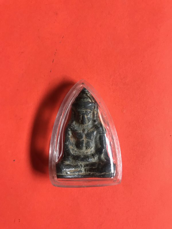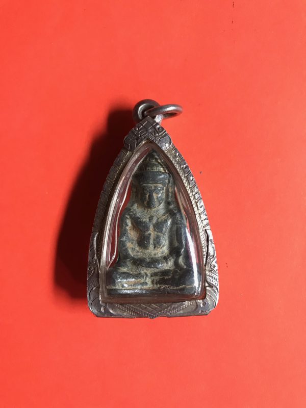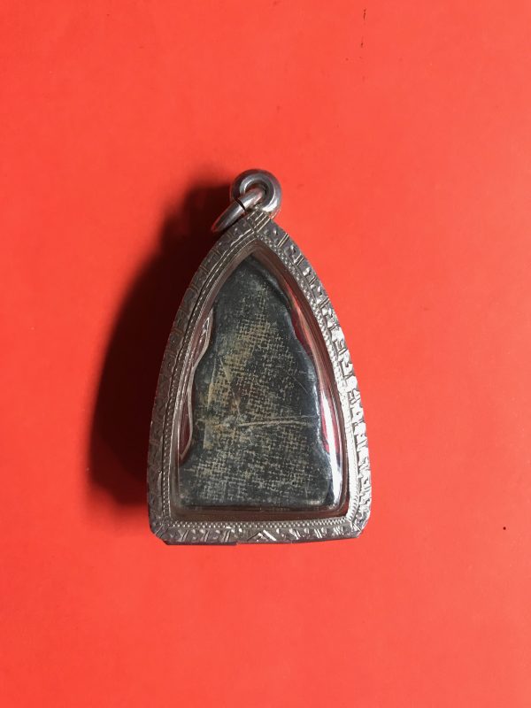 พระร่วงนั่งกรุลพบุรีเนื้อชินหลังลายผ้า เลี่ยมเงินหนาเปิดฝาได้