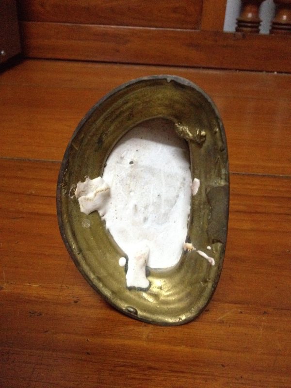 ตลับทองเหลืองจีนโบราณ มีแกะสลักลวดลายรูปและภาษาจีน โดยรอบสวยงามสมบูรณ์