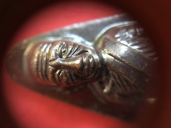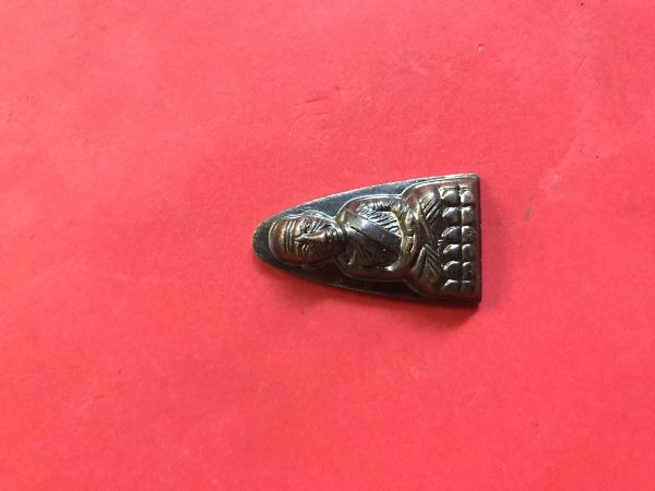 พระหลวงปู่ทวดพิมพ์เตารีดใหญ่ปั๊ม หลังหนังสือเนื้อทองแดงรมดำ วัดช้างให้ รุ่น 101 ปี อาจารย์ทิม โค๊ตมีตัว ท. จัดสร้างปี 2556