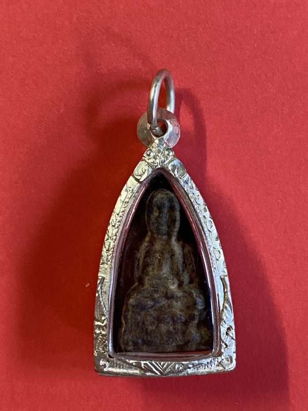 พระหลวงปู่ทวดเนื้อว่าน อ.นอง รุ่นแรกวัดทรายขาว ปี2514 ฝังตะกรุดกดพิมพ์มือ มีไขว่านจับรอบองค์เลี่ยมกรอบเงินหนายกซุ้ม