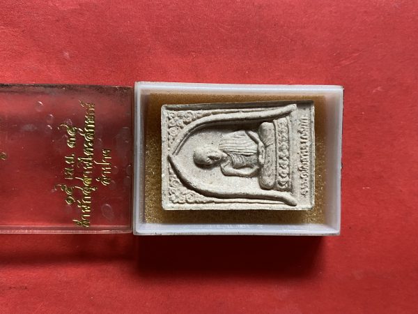 องค์พระมีหน้าตาสวยชัดเจน ประกอบด้วยมวลสารจิตรดา ขนาดประมาณ 35X23X6 มิลลิเมตร ปลุกเสกวันที่ 28 กันยายน 2516