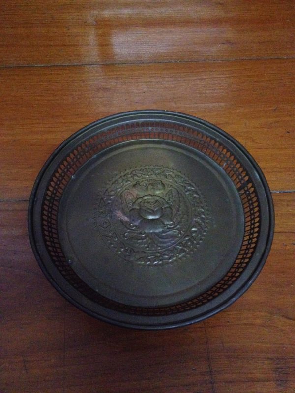 พานทองเหลืองเก่าสมบูรณ์สวยงามมากๆ ลายกุหลาบ