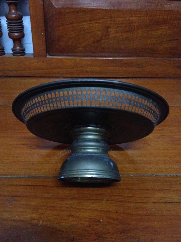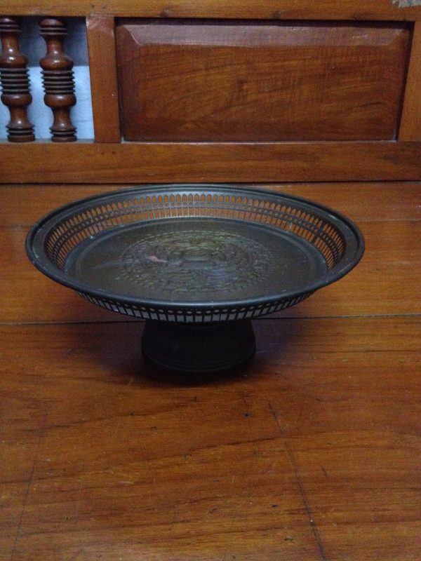 พานทองเหลืองเก่า ลายกลีบมะเฟือง ขนาดเส้นผ่าศูนย์กลาง 24 ซม. สูง 14 ซม.