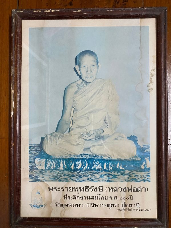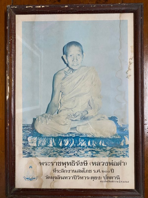 ภาพพิมพ์สี พระราชพุทธิรังษี (หลวงพ่อดำ) วัดมุจลินทวาปีวิหาร (ตุยง) ปัตตานี คณะศิษย์พิมพ์ถวายเมื่อ มี.ค.2525 29.5X41ซม.