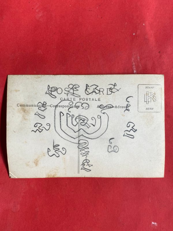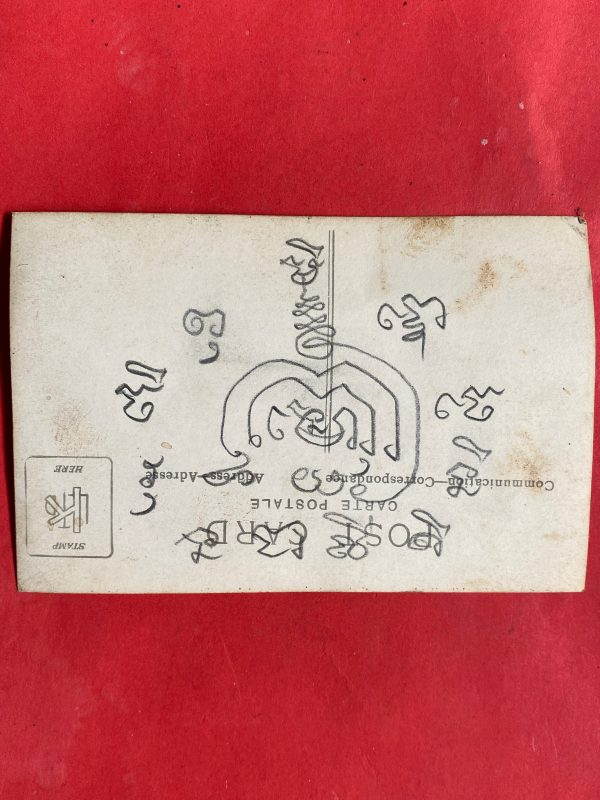 ภาพโปสการ์ดเก่า ด้านหน้ารูปถ่ายของหลวงปู่ศุข ด้านหลังมียันต์ของหลวงปู่ หายากมาก