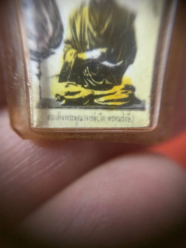 รูปถ่ายสมเด็จพระพุฒาจารย์ ( โต พรหมรังษี ) หลังเขียนยันต์บนกระดาษเก่า เลี่ยมกรอบพลาสติก