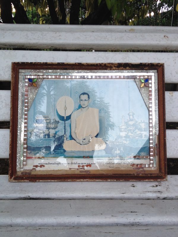 รูปถ่ายเก่าในหลวงทรงผนวชอยู่ในกรอบไม้เก่าขนาด 13″x17″ กระจกร้าว