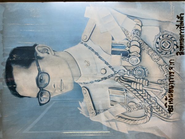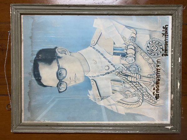 รูปถ่ายเก่าในหลวงร.9 จากภาพวาดสีอยู่ในกรอบไม้เดิมใหญ๋มาก อภืนันทนาการจากร้าน สิงห์ทองการไฟฟ้า