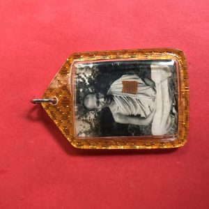 ล็อกเก็ตรูปถ่ายเก่าหลวงพ่อเงินวัด บางคลาน หลังเป็นพระพุทธยืนบนดอกบัว