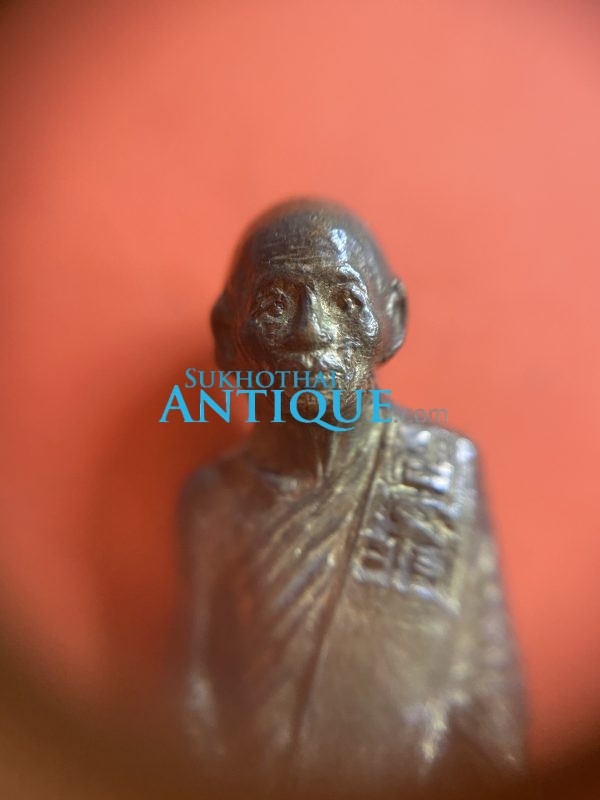 รูปหล่อพระครูนิสัยจริยคุณหรือหลวงพ่อโอดวัดจันเสนรุ่นหน้าแมว ปี 31 เนื้อทองฝาบาตรกระไหล่ทอง