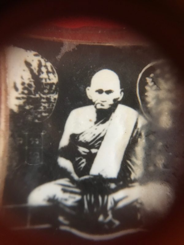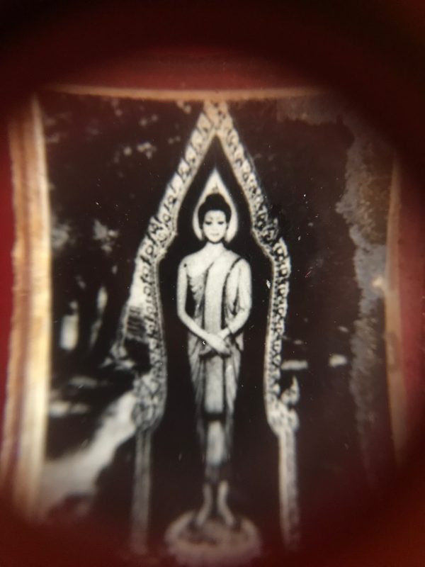 ล็อกเก็ตรูปถ่ายเก่าหลวงพ่อเงินวัด บางคลาน หลังเป็นพระพุทธยืนบนดอกบัว