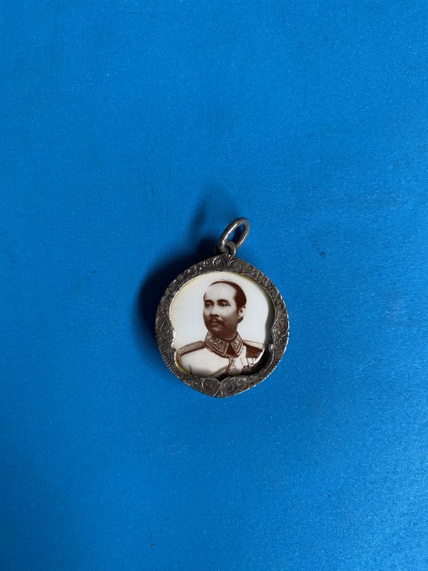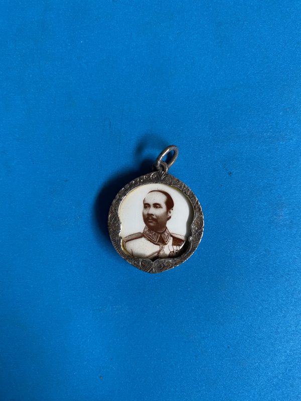 ล็อกเก็ตเก่ารูปเสด็จพ่อร.5 ครึ่งองค์ เลี่ยมเงินเก่าแกะลายหน้าและหลังเป็นรูปเทวดาพร้อมแขวนคอ