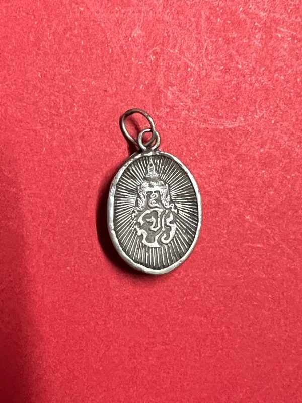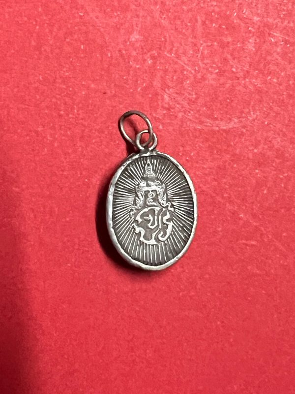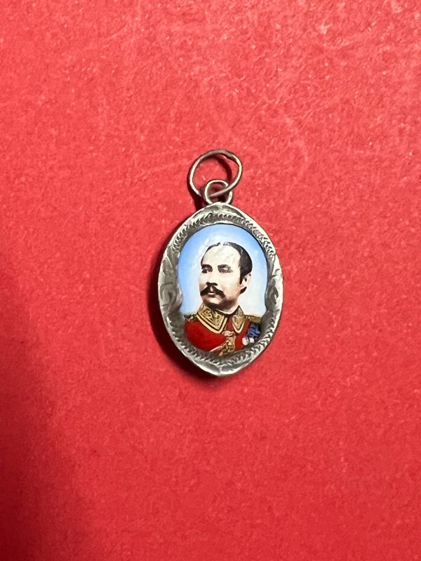 ล็อกเก็ตเสด็จพ่อร.5 เลี่ยมเงินด้านหลัง มีตรา จปร. ครอบมงกุฎ ใส่ห่วงเก่า พร้อมบูชา