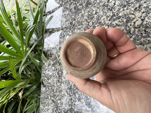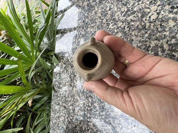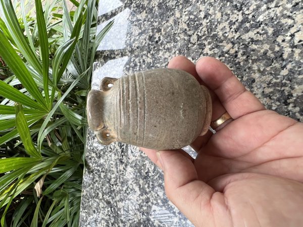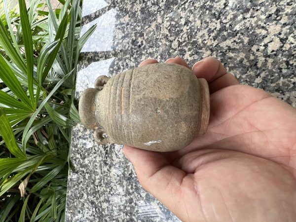 สังคโลกเก่ารูป คณโฑนำ้กระปุกมีหู 2 หู ชนิดดินเผาไม่มีลวดลายใบเล็กจิ๋ว สภาพสวย