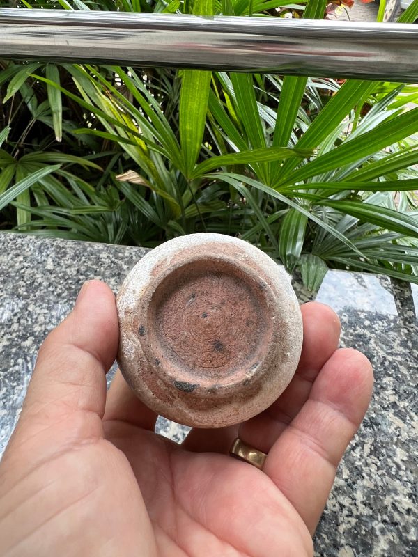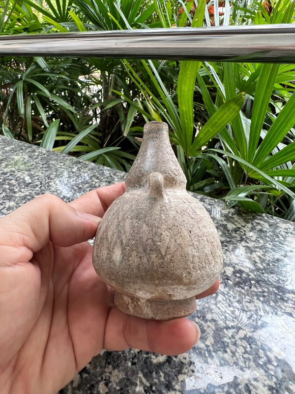 สังคโลกเก่ารูป คณโฑนำ้กระปุกมีหู 2 หู ชนิดดินเคลือบลงลวดลายก่อนไปเผาใบเล็กจิ๋ว สภาพสวยสมบูรณ์มาก