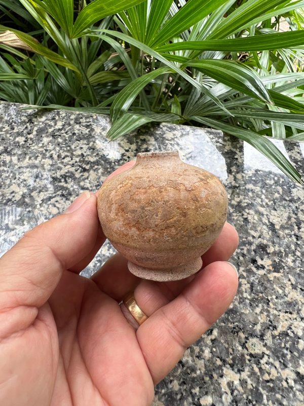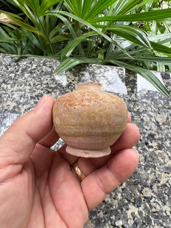 สังคโลกเก่ารูป ทรงโอ่งนำ้ปากแคบคล้ายศิลปะสุโขทัย ชนิดดินเผาโบราณไม่มีลวดลายใบเล็กจิ๋ว สภาพสวยสมบูรณ์