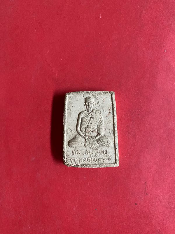 หลวงปู่ต๊วนวัดสวัสติการาม(ต้นหัด) อ.สวรรคโลก จ.สุโขทัย อายุครบ 80 ปี เนื้อผงทรงสี่เหลี่ยมด้านหลังเป็นยันต์ของหลวงพ่อๆปลุกเสกมีเส้นผมหลวงพ่อด้วย
