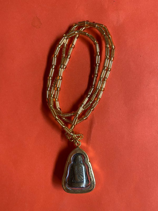 หลวงพ่อเงินหล่อโบราณออกวัดท้ายนำ้ เลี่ยมพลาสติกกันนำ้กรอบทองไมค่อน รวมสร้อยคอพร้อมใช้