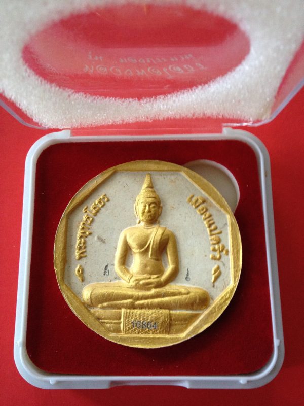 หลวงพ่อโสธรรุ่น ” ทองประธาน ” องค์พระสีทองฉากสีขาว ข้างองค์พระตอกโค๊ต ส่วนที่ฐานตอกโค๊ต 16864 พร้อมกล่อง