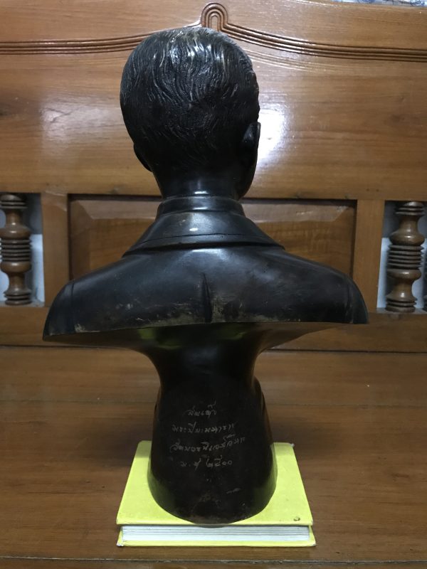 องค์หล่อในหลวงร.5 ครึ่งองค์ขนาดประมาณ 12″ ที่ฐานด้านหน้ามีตรา จปร.ด้านหลังเขียน สมเด็จพระปิยะมหาราช วัดบวร พ.ศ.2500