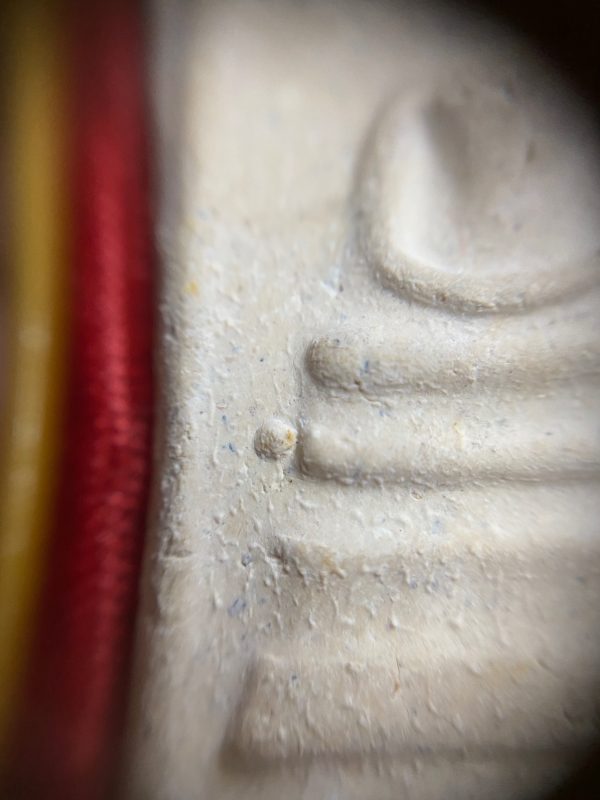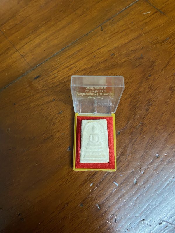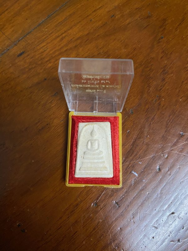องค์พระมีหน้าตาสวยชัดเจน ประกอบด้วยมวลสารจิตรดา ขนาดประมาณ 35X23X6 มิลลิเมตร ปลุกเสกวันที่ 28 กันยายน 2516