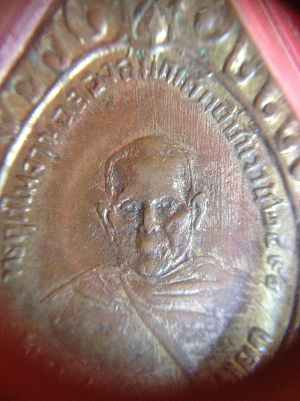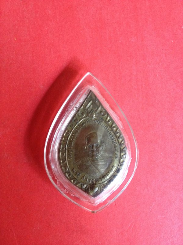 เข็มกลัดที่ระลึกงานฉลองสมณศักดิ์ท่านเจ้าคุณสวรรณวรนายก(หลวงพ่อเพชร) เนื้อทองแดงกระไหล่ทอง ปี 2490 เลี่ยมพลาสติก สายงามคมชัด