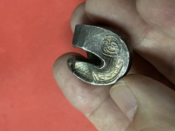 เหรียญช้างสามเศียรหนึ่งสลึง ร.6 เนื้อเงิน ปี 2467 หูตาคมชัดทั้งหัวและก้อยกะไหล่เงินเดิม