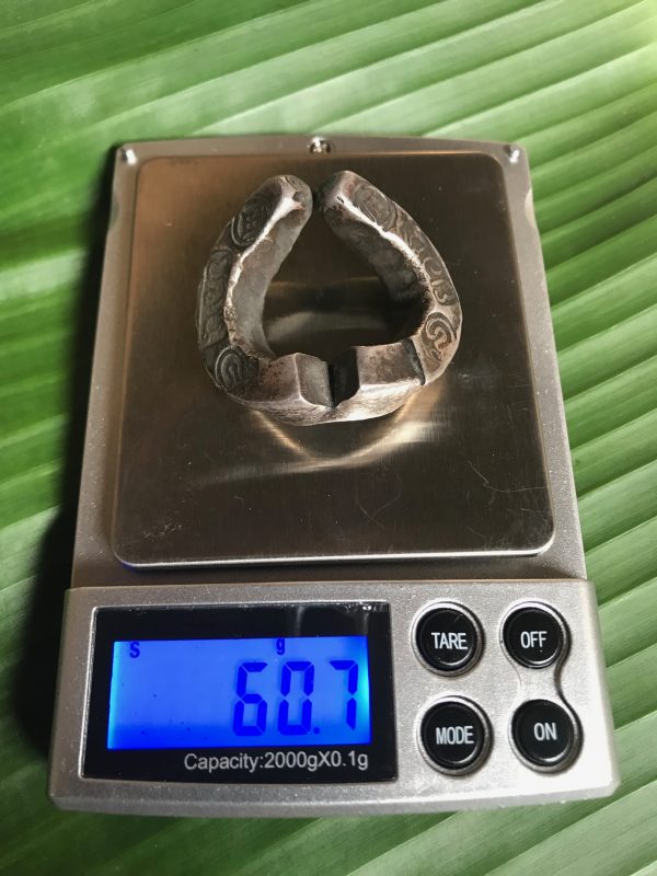 เงินเจียงเนื้อเงินหนัก 60.7 กรัม ประมาณ4บาท ตอกตรา ยอนและตราอี่นๆคมชัดมากอยู่รอบตัว