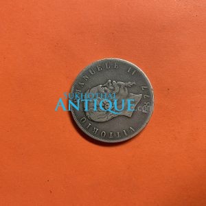 เหรียญเก่าเนื้อเงินประเทศอิตาลี สมัยปกครองโดย VITTORIO EMANUELE II ปี ค.ศ.1877 มูลค่า 5 Lire ตรงกับประไทย สมัย ร.5
