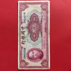 ธนบัตรเก่าประเทศจีน ค.ศ. 1940 มูลค่า 10 YUAN อายุประมาณ 80 กว่าปี สภาพใช้