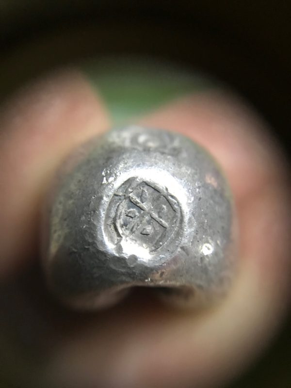 เม็ดเงินพดด้วงหนักหนึ่งบาท ตราครุฑ สมัย ร.2 ประมาณ ปี พ.ศ.2352 – 2367 .ตอกตราสวยงามคมชัดมาก