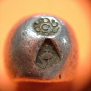พดด้วงรัตนโกสินทร์เม็ดบาทสมัย ร. 4 พ.ศ.2394-2411 ( ตรามงกุฎ-กรงจักร ) เม็ดนี้พิเศษมี 3 ตรา (เม็ดที่ 2)
