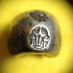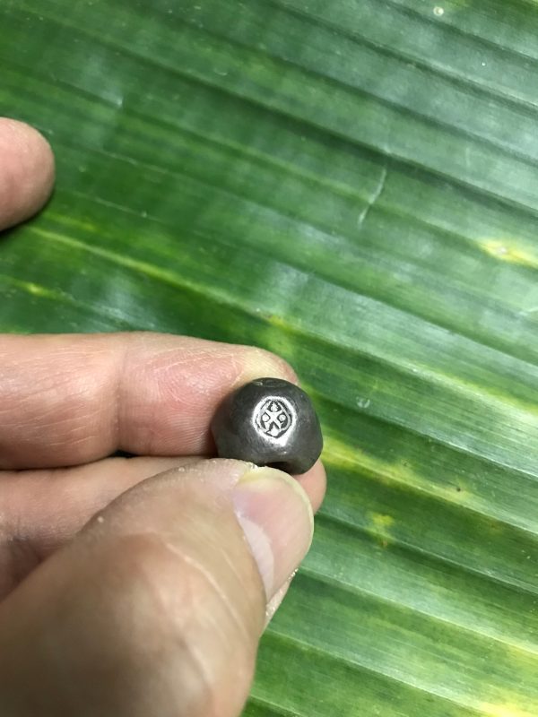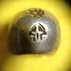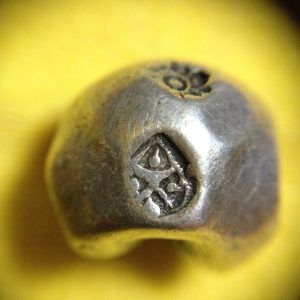 พดด้วงเม็ด 1 บาทสมัยพระเจ้าปราสาททองปี พ.ศ. 2173-2198 ตรา พุ่มข้าวบิณฑ์จอมปราสาท เป็นรูป 7 จุดอยู่ภายในกรอบ สวยคมชัดมากๆ (เม็ดที่ 2)