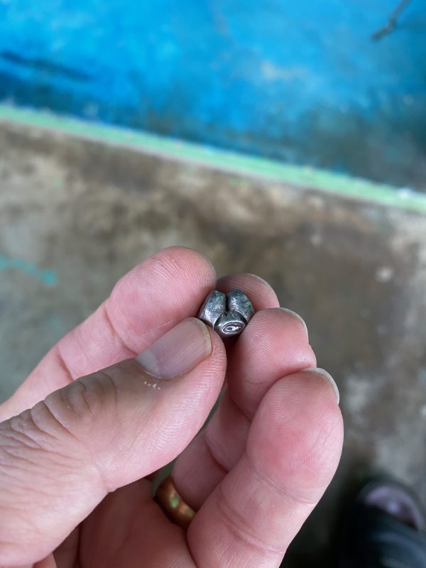 เม็ดเงินโบราณพดด้วงสมัยกรุงสุโขทัยหนักสองสลึงตรา ช้างการ์ตูน -หอยสังข์ คมชัดสวยงาม
