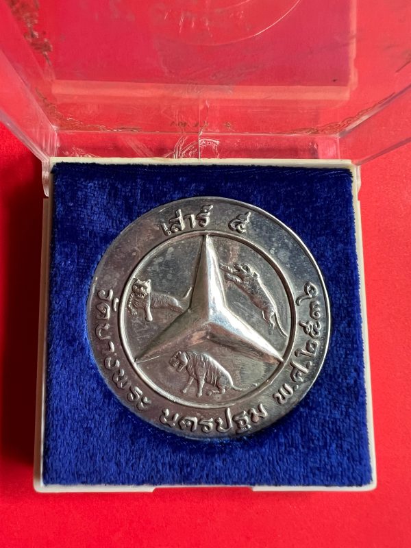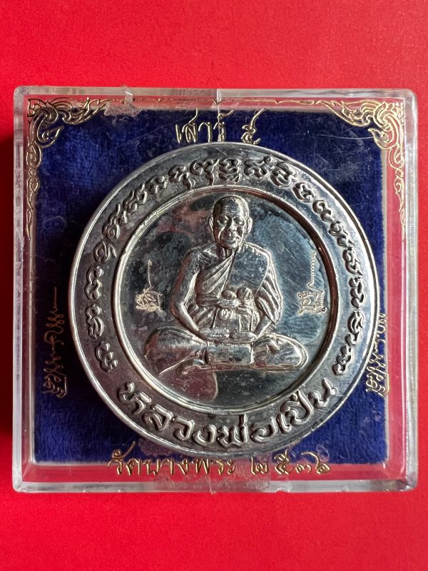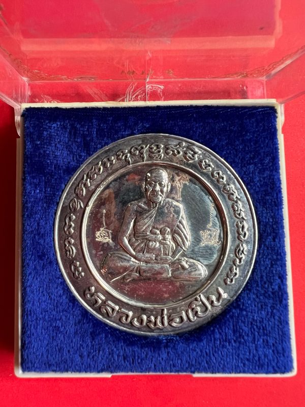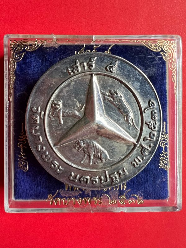 เหรียญกลมเสาร์ 5 หลวงพ่อเปิ่น วัดบางพระ ปี2536 หลังตราเบ็นซืสามเสือ ขนาดใหญ่จัมโบ้ 5 ซ.ม. เนื้อเงินออกเงา