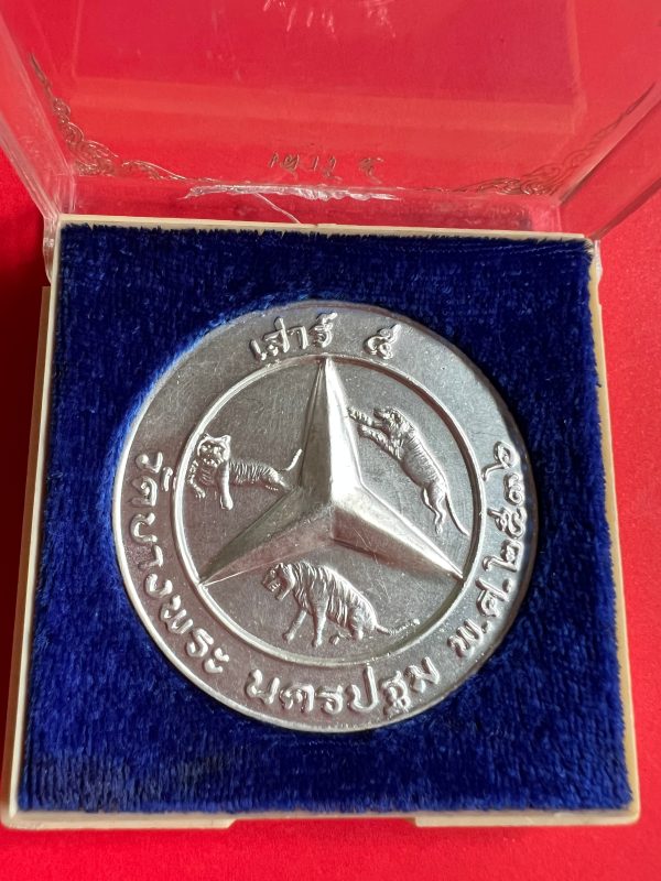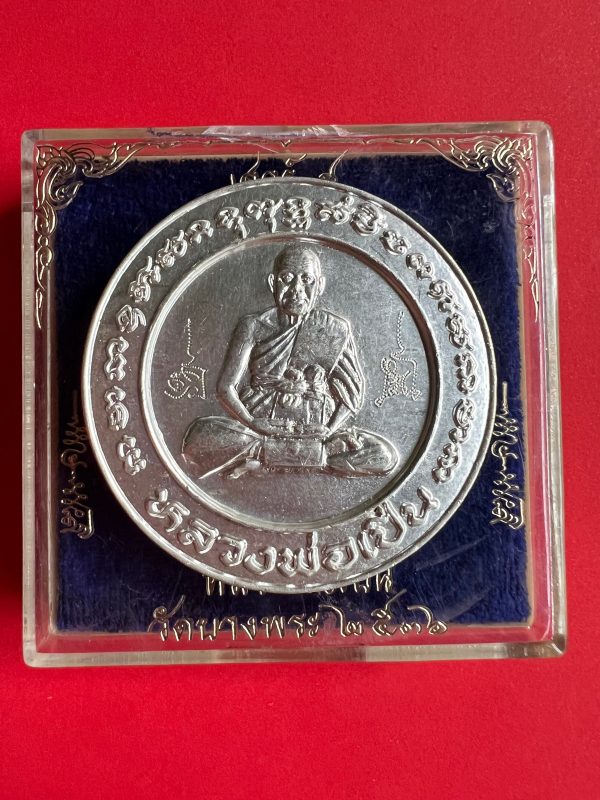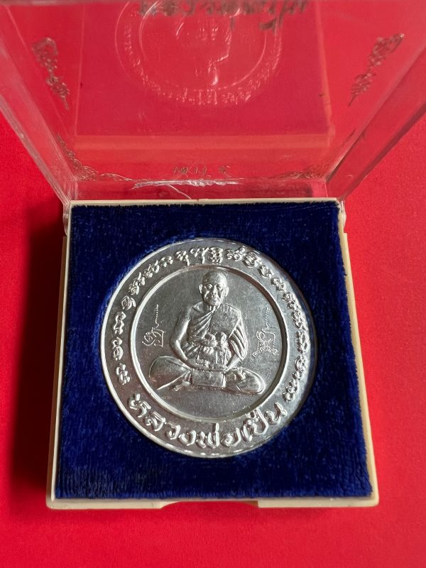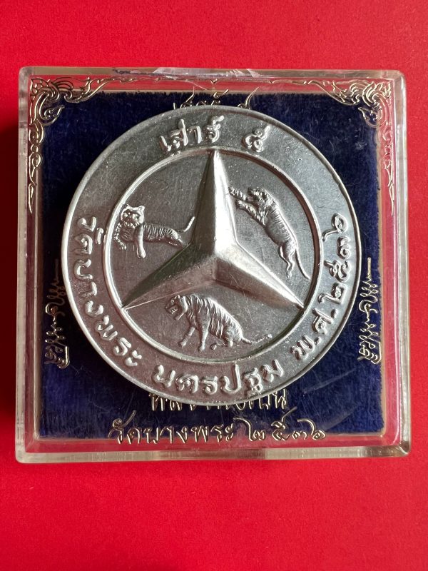 เหรียญกลมเสาร์ 5 หลวงพ่อเปิ่น วัดบางพระ ปี2536 หลังตราเบ็นซืสามเสือ ขนาดใหญ่จัมโบ้ 5 ซ.ม. เนื้อเงินออกด้าน