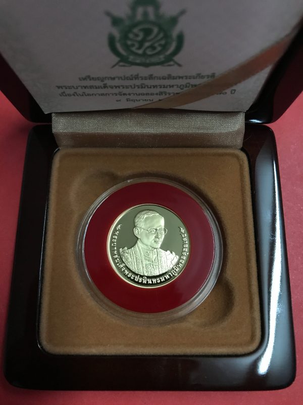 เป็นเหรียญรูปคู่ใหลวงกับพระราชินีด้านหลังเป็นรูปเจดีย์คู่ สร้างถวายเนื่องในวโรกาสพระชนมายุครบ 60 พรรษา บรรจุอยู่ในกล่องเดิม